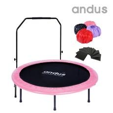 앤드어스 점핑 원형 트램폴린+커버+조각매트 40인치 48인치 55인치 유아 방방이 안전핸들바, 크림핑크