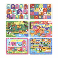 월드베스트 EQ IQ 판퍼즐 6종 세트, 1세트, 60피스(우리 나라, 세계 여행, 바닷 속, 공룡), 20피스(알파벳, 숫자)