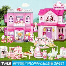 [단독] 캐리어로 변신하는 콩지래빗 디럭스하우스&쇼핑몰 선물세트 7종 / TV광고 토끼인형 역할놀이 집콕놀이 실내놀이 원앤원세트, 01-래빗set(디럭스하우스+욕실+요리시간)