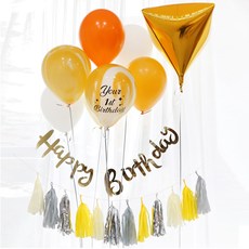 태슬가랜드+해피버스데이 캘리가랜드+마블7P / 파티풍선 가랜드 베이비샤워소품 파티가랜드 파티소품 셀프촬영소품 아이방가랜드, 태슬(허니문)+생일캘리(골드)+마블7p(옐로우)