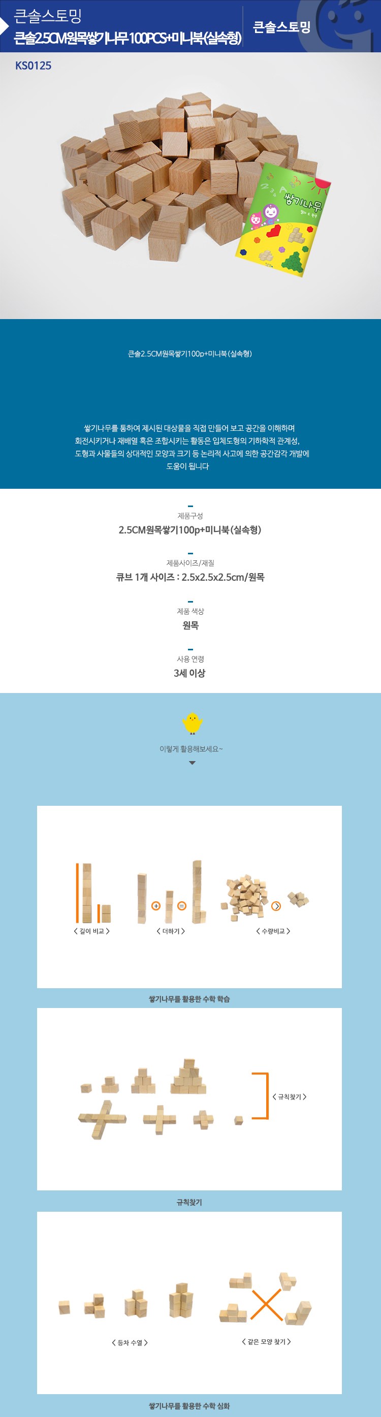 가베가족 2.5cm 미송 원목쌓기나무 100p + 미니북, 원목