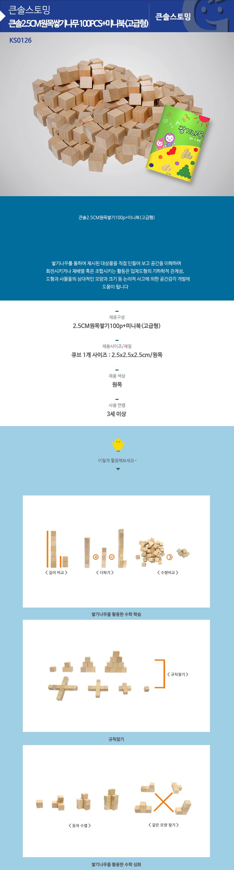 가베가족 2.5cm 비취 원목쌓기나무 100p + 미니북, 원목