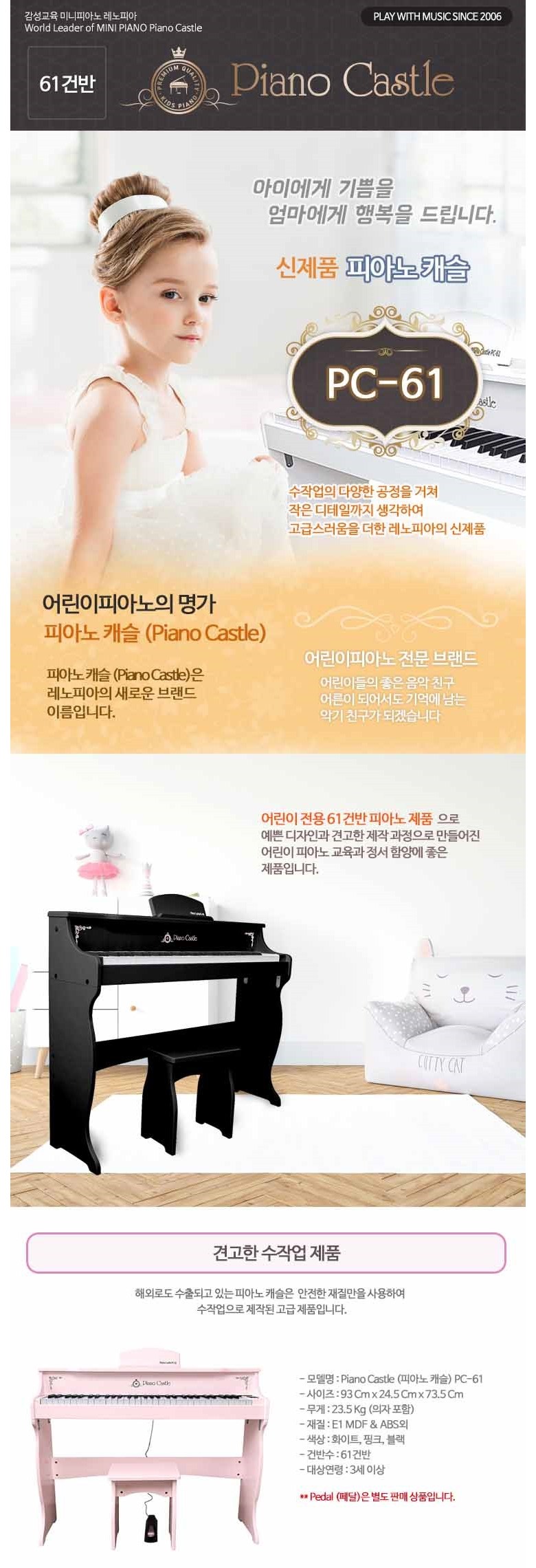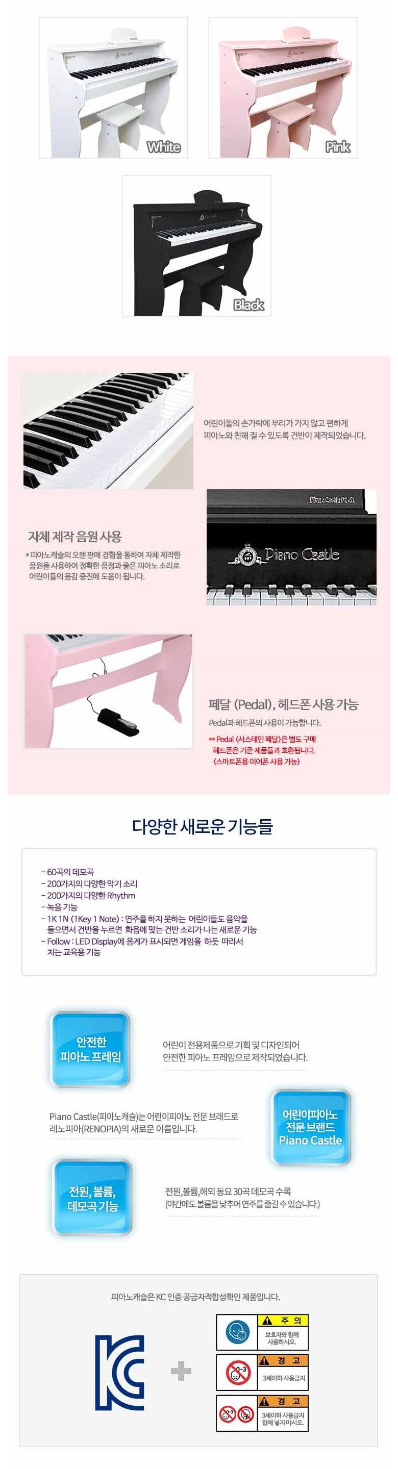 고급도장제품 레노피아 어린이피아노 61건반 화이트 피아노캐슬 화이트