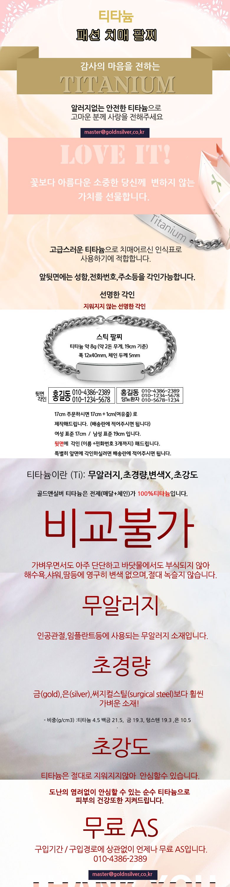 골드앤실버 티타늄 팔찌 치매팔찌 어르신 인식표 건강팔찌 무알러지 알러지방지 미아방지, 1개