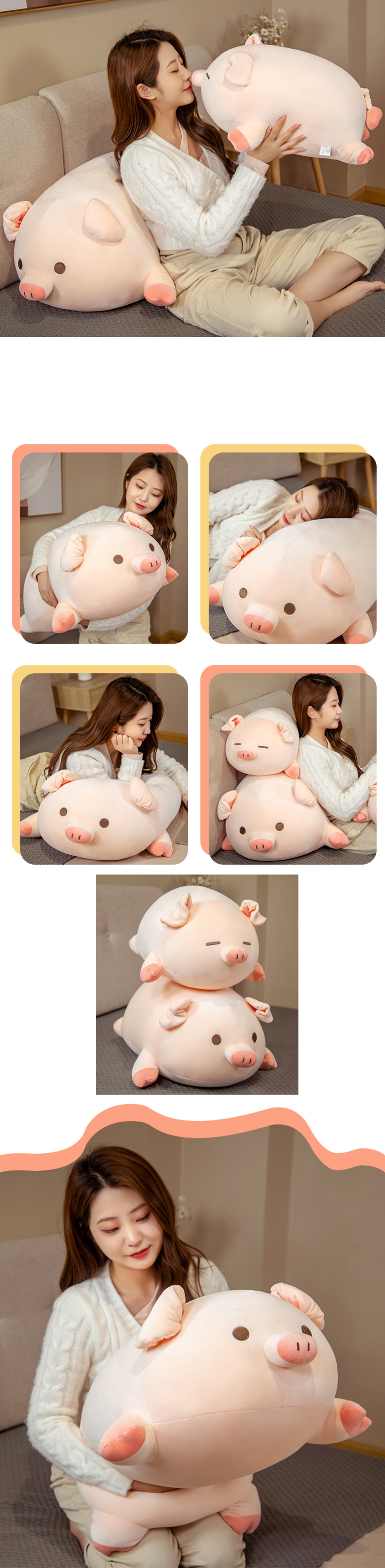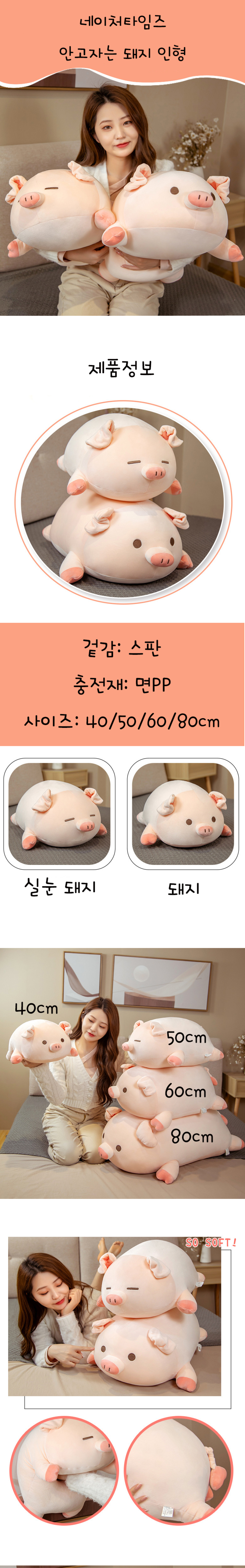 네이처타임즈 안고자는 실눈 돼지 인형, 혼합색상, 50cm
