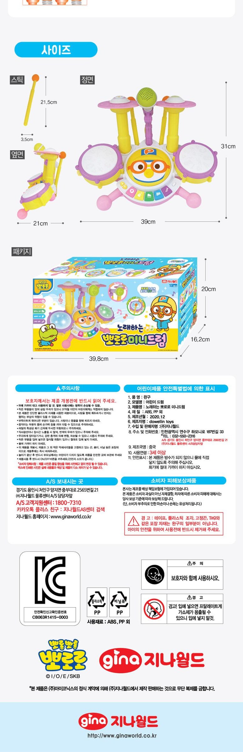 노래하는 뽀로로 미니 드럼 뽀로로 드럼