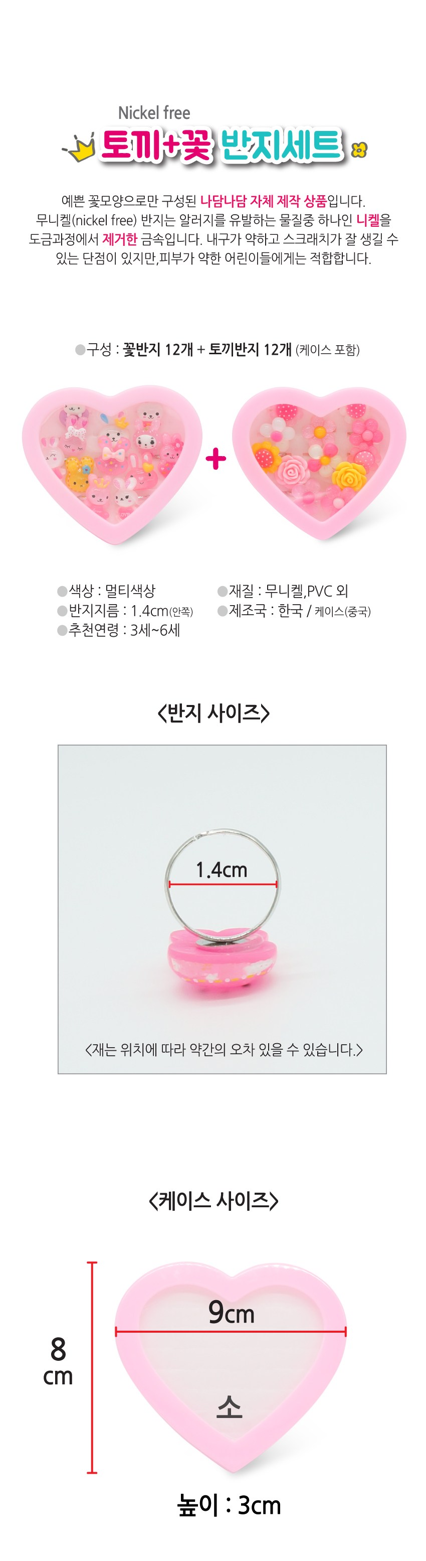 니켈프리 꽃반지 12p + 토끼반지 12p + 케이스