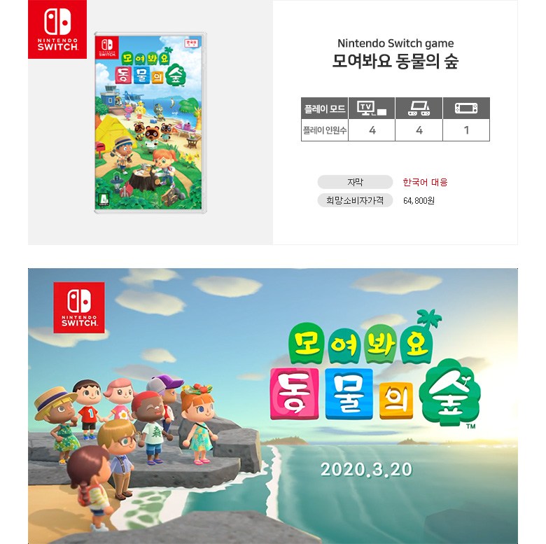닌텐도 스위치 모여봐요 동물의 숲 한국어 게임타이틀