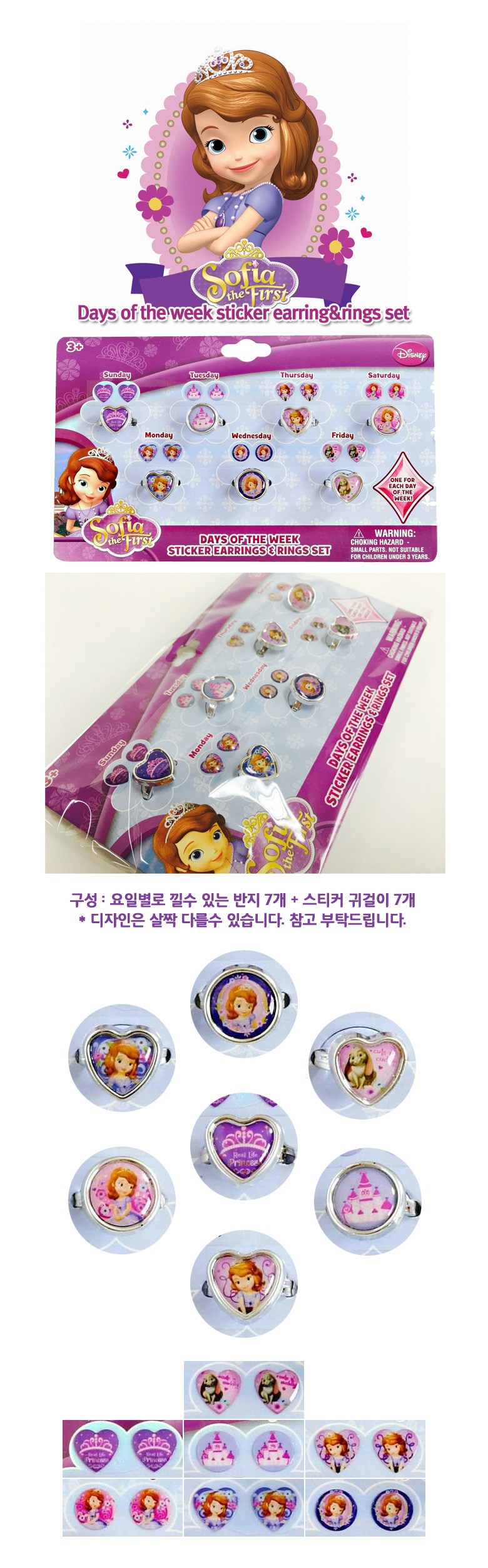 종류 디즈니 소피아 요일반지와 스티커 귀걸이 세트
