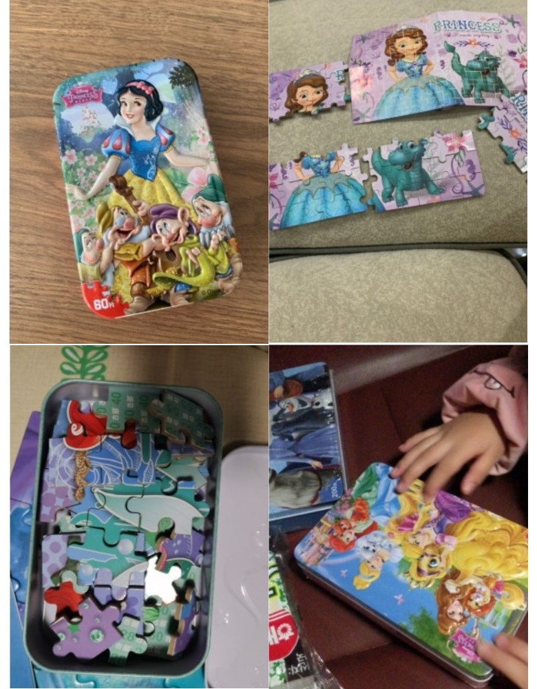 디즈니 프린세스 틴케이스 그림퍼즐 공주 캐릭터 소피아 인어공주 백설공주 신데렐라 오로라 자스민 라푼젤 퍼즐 60피스 pcs 휴대용 어린이 유아 아동 쉬운, 5