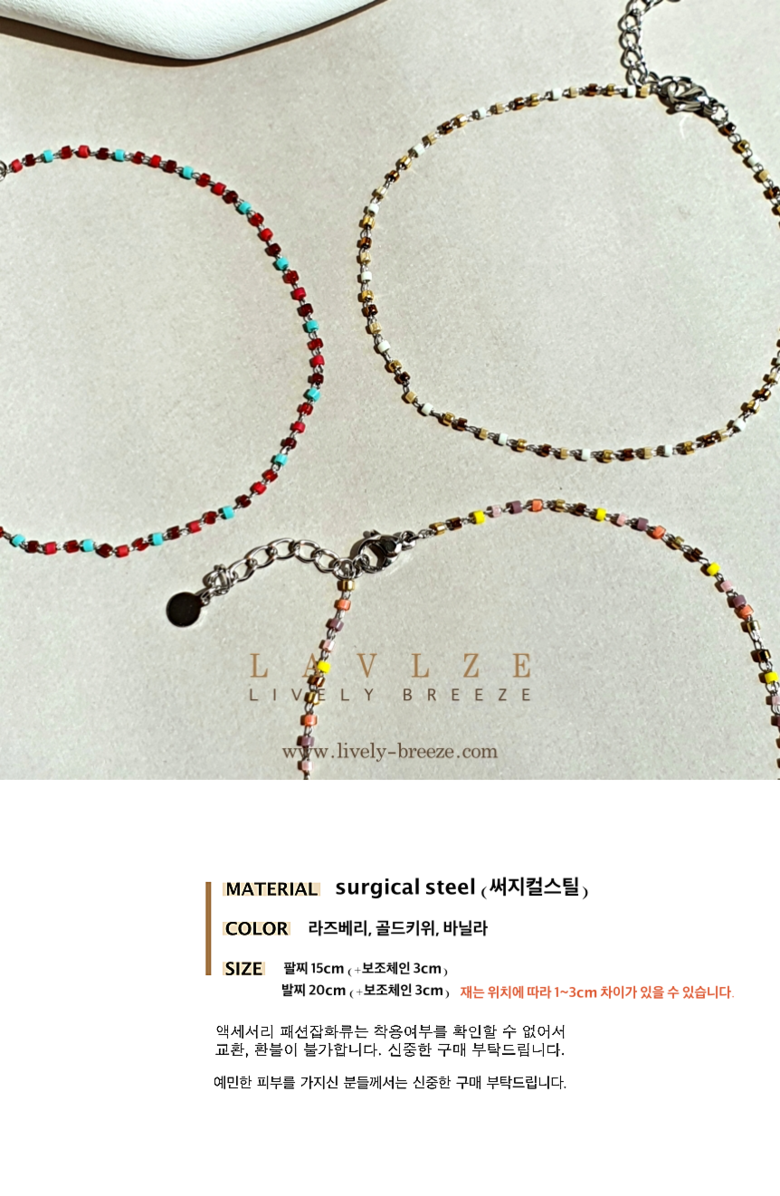라이블리 브리즈 써지컬스틸 비즈 레이어드 티타늄 써지컬팔찌 발찌
