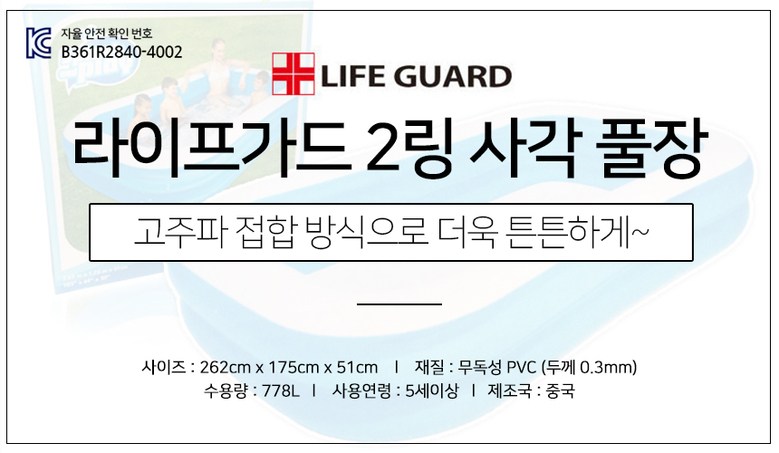 라이프가드 2링 사각 풀장 아동 대형 실내 야외 물놀이용품