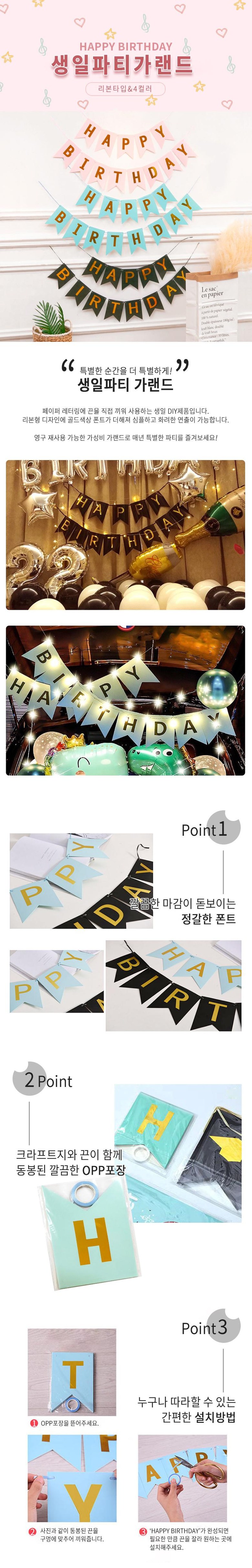 라이프팝 1+1 생일가랜드 홈파티 가랜드 생일축하 카드, 스카이+핑크