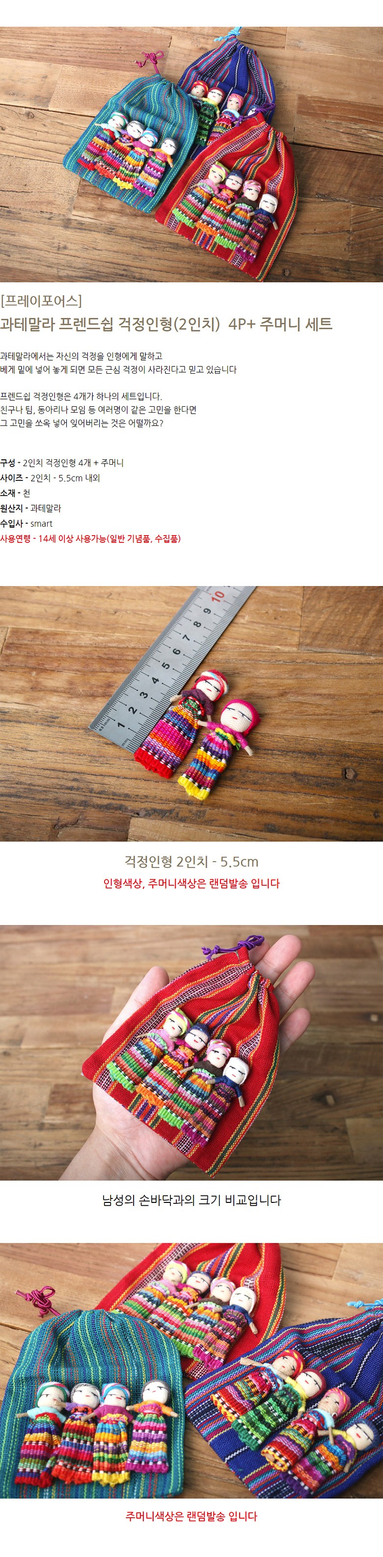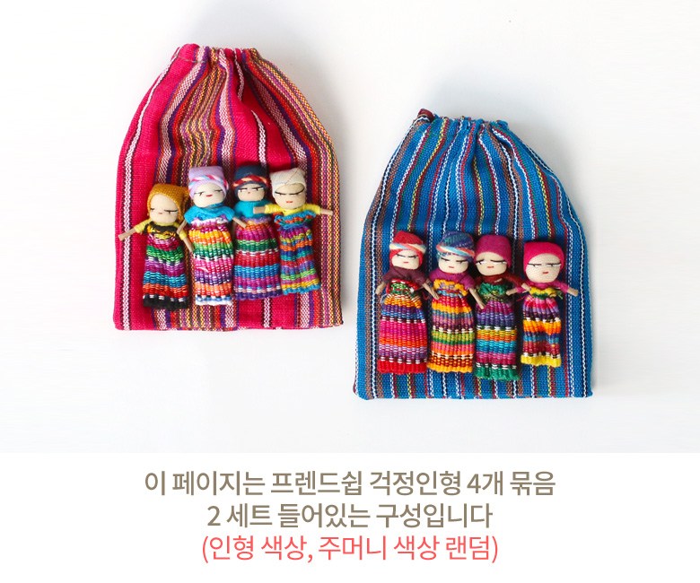 로맨틱노벰버 과테말라 프렌드쉽 걱정인형 4P + 주머니 2세트, 5.5cm, 혼합 색상