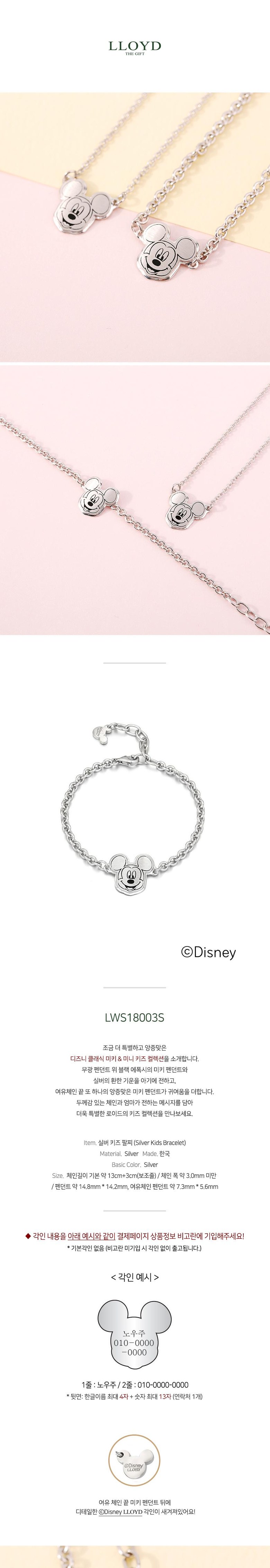 [로이드x디즈니] 키즈 미키 펜던트 각인 Silver 팔찌 LWS18003S, 화이트