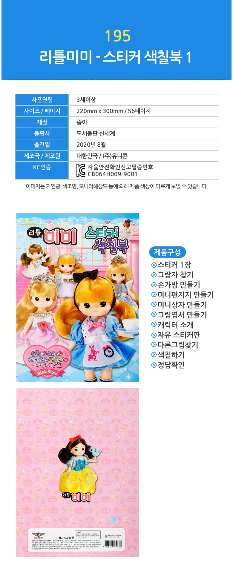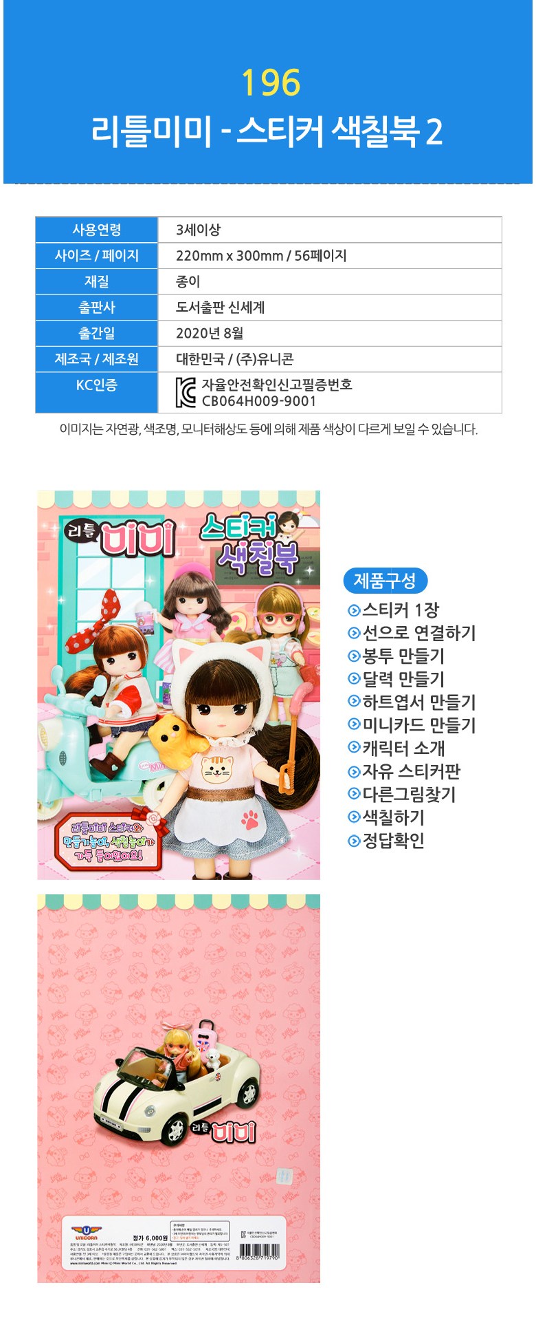 리틀미미 스티커 색칠북 2종 세트, 유니콘
