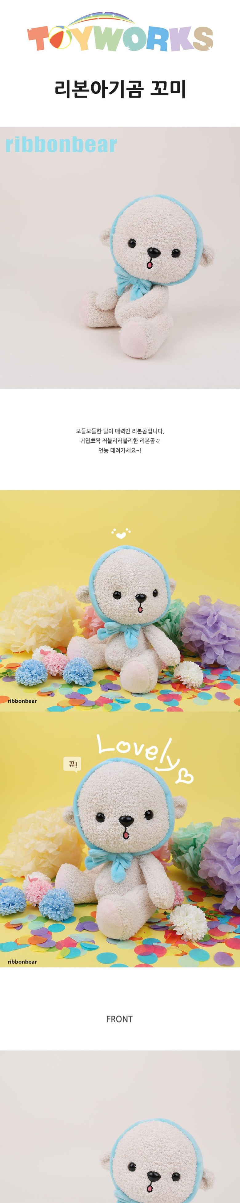리해피몰 KC정품 토이웍스 리본아기곰 꼬미 베어 리본곰 애착인형, 25cm