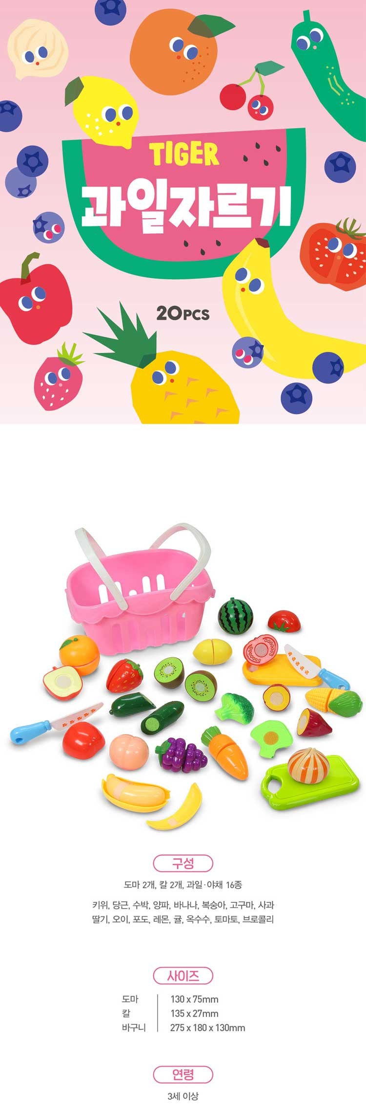 마이리틀타이거 타이거 과일 자르기 소꿉놀이 20종 세트, 혼합색상