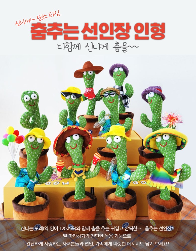 말하는선인장 춤추는 말따라하는 선인장 KC인증정품 녹음 노래하는 움직이는 선인장 인형 장난감[당일출고/건전지포함], 4. 따스한 목도리 선인장