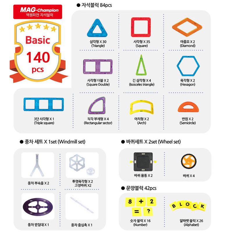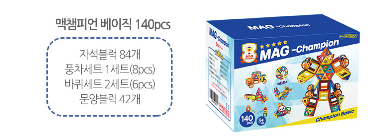 맥챔피언 Basic 자석블럭 140피스, 혼합 색상