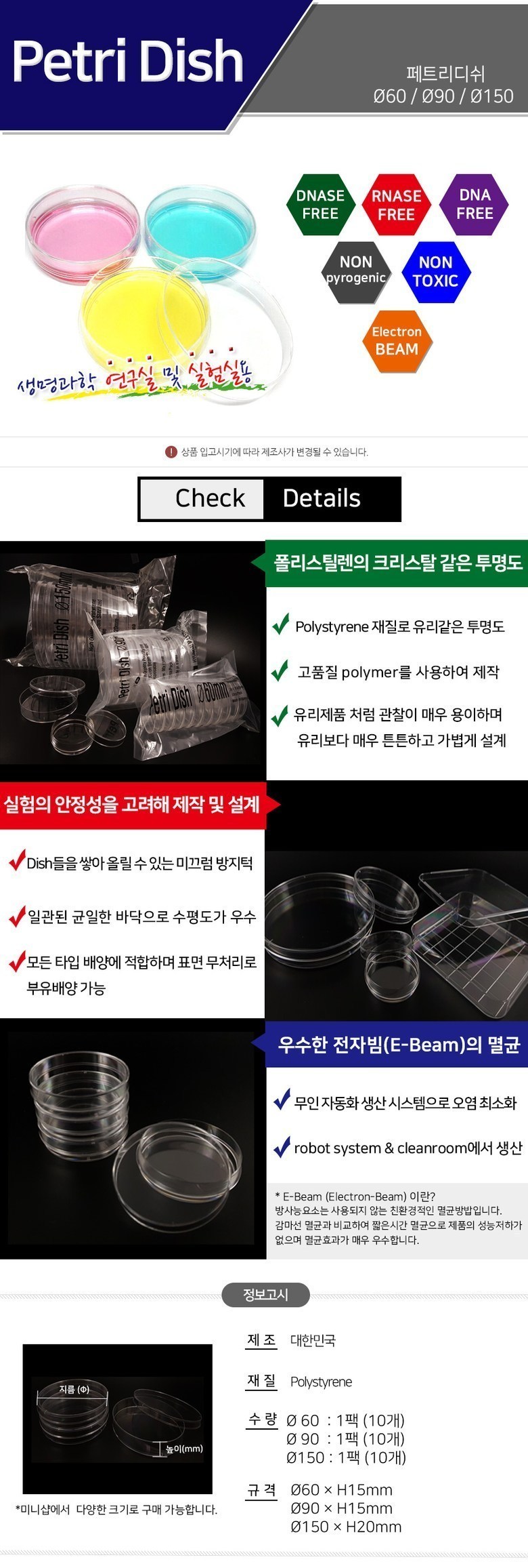 | 품명 및 모델명 | 멸균 투명 플라스틱 페트리디쉬 |