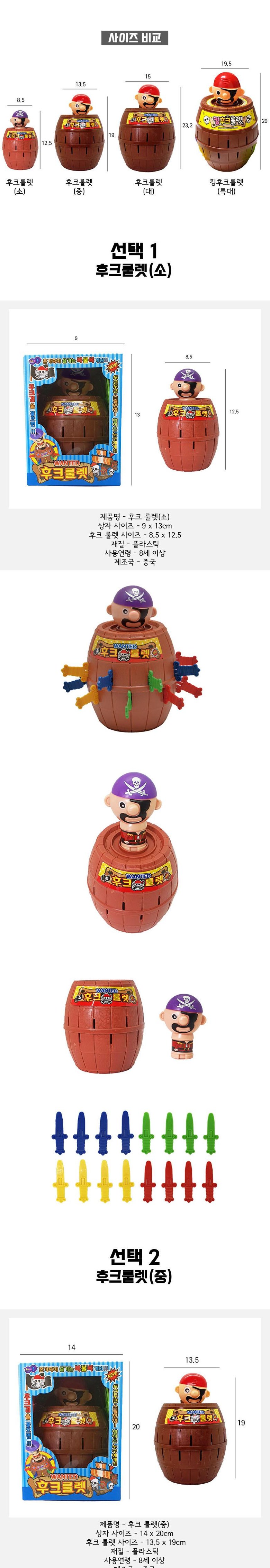 [무료배송]해적룰렛 후크선장 왕 특대형 대형 중형 소형 미니 어린이집 통아저씨 복불복, 선택3 : 후크룰렛(대)