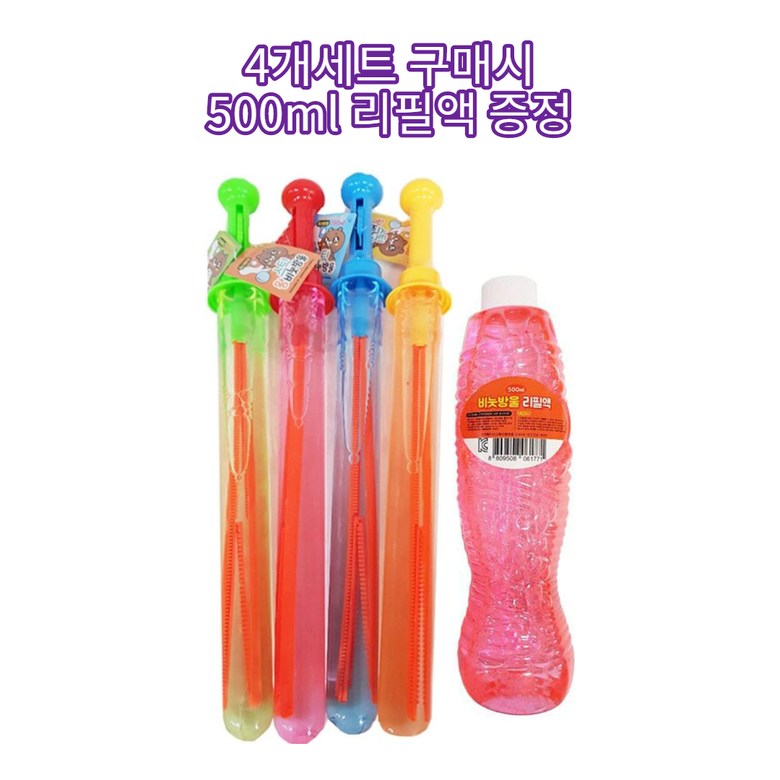 (무료배송)4개세트 초 대용량 대형 비눗방울 비누방울 용량 3배 280ml 리필액 500ml증정, 280ml 4개세트