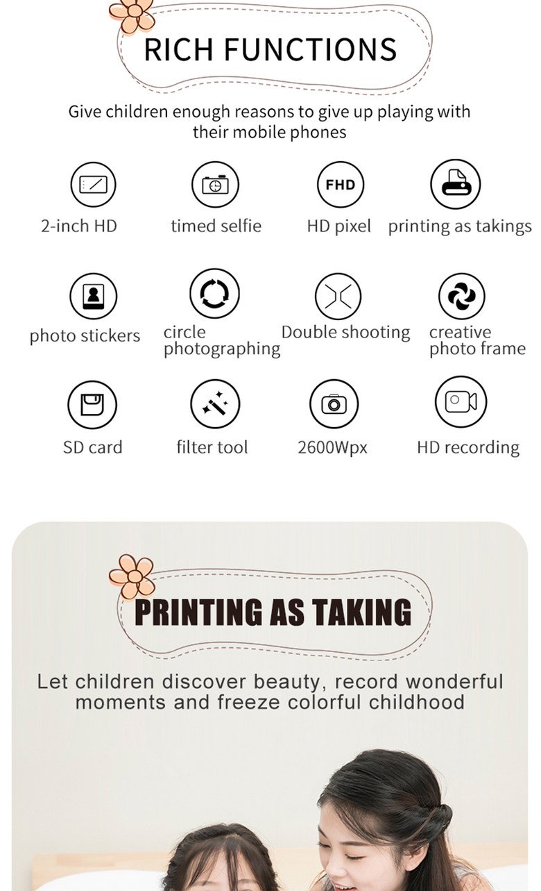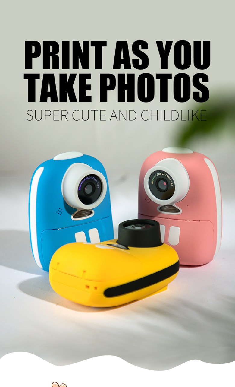 미니 휴대용 어린이 인스턴트 카메라 장난감 사진 비디오 디지털 카메라 아기 생일 선물 사진 열 카메라, Yellow, 32GB