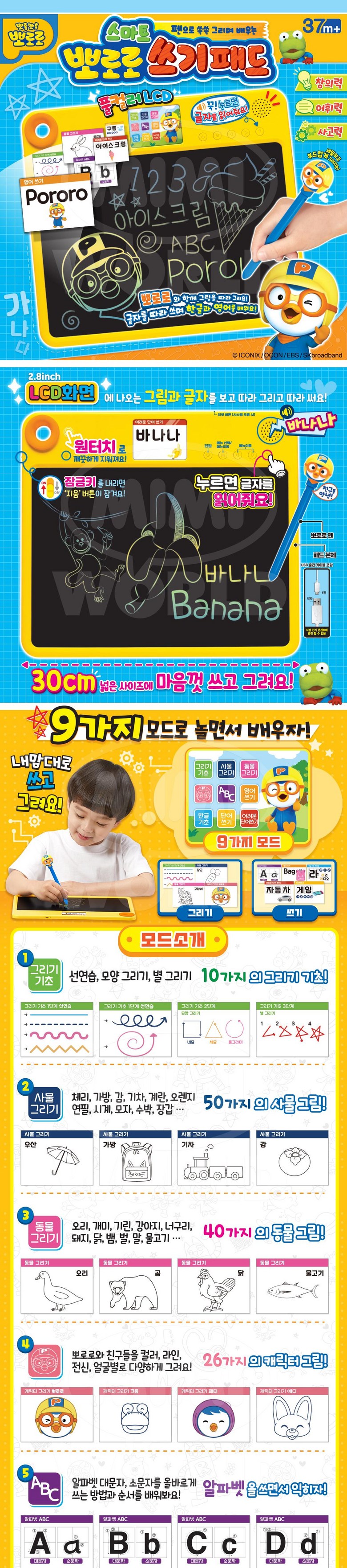 미미월드 뽀로로 스마트쓰기패드 스마트패드 그리기놀이 한글 영어 숫자 공부