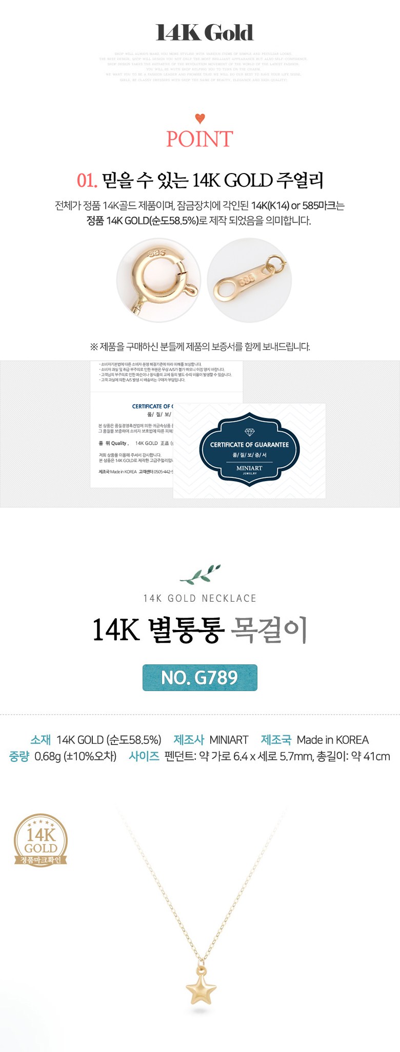 미앤유 14k목걸이 별 하트 돌고래