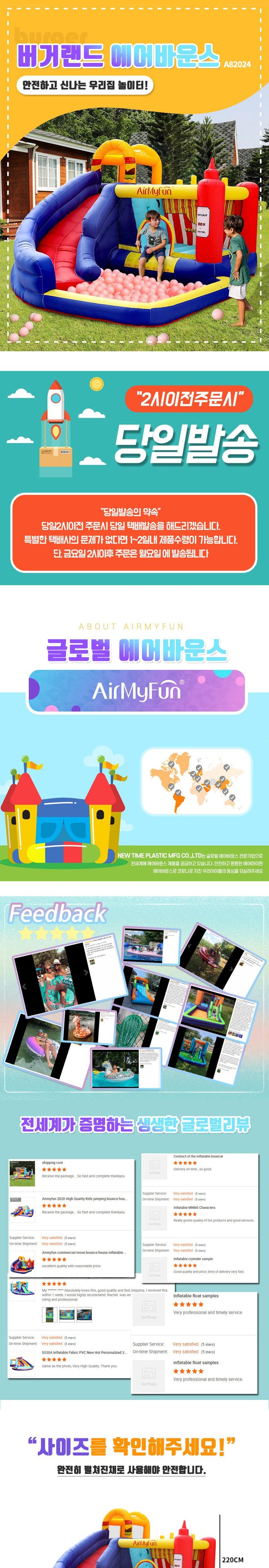버거랜드에어바운스 A82024 가정용 야외실내 놀이기구 캐릭터 손소독제용기세트 증정, 버거랜드에어바운스 A82024+캐릭터손소독제용기