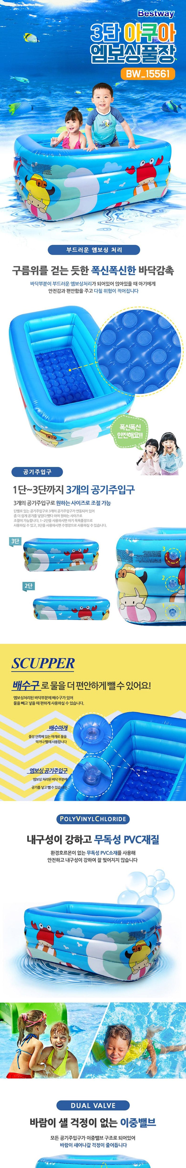 베스트웨이 3단 아쿠아 엠보싱 에어 베란다풀장 BW15561, 혼합색상