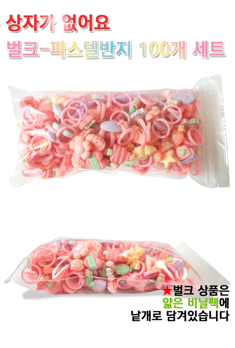 보물창고 여아반지 벌크 비닐포장 파스텔반지 100개 선물세트