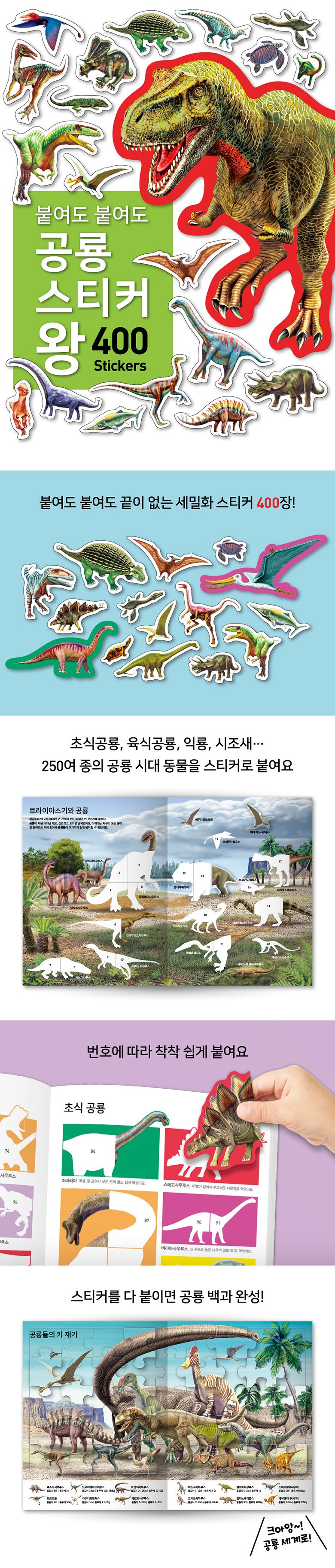 도서명 붙여도 붙여도 공룡 스티커왕(400 스티커)