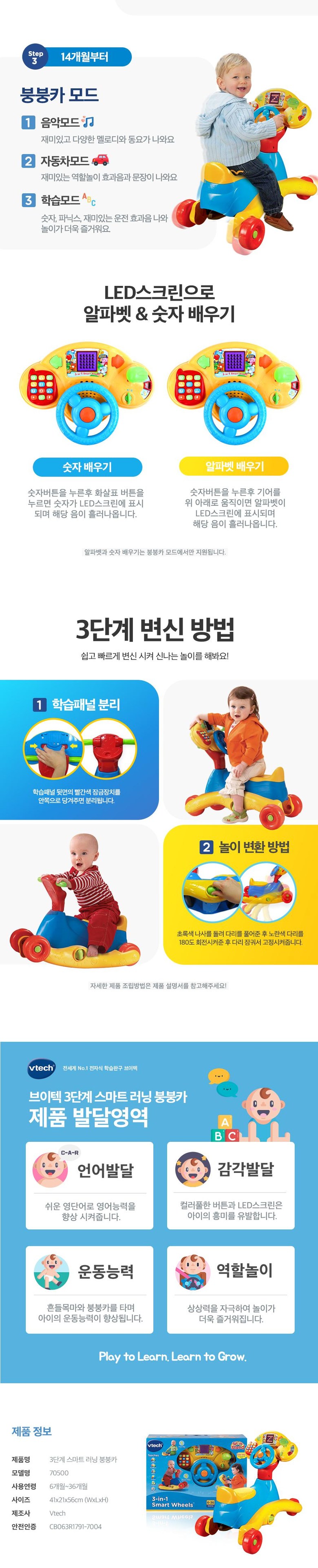 브이텍 3단계 스마트 러닝 붕붕카
