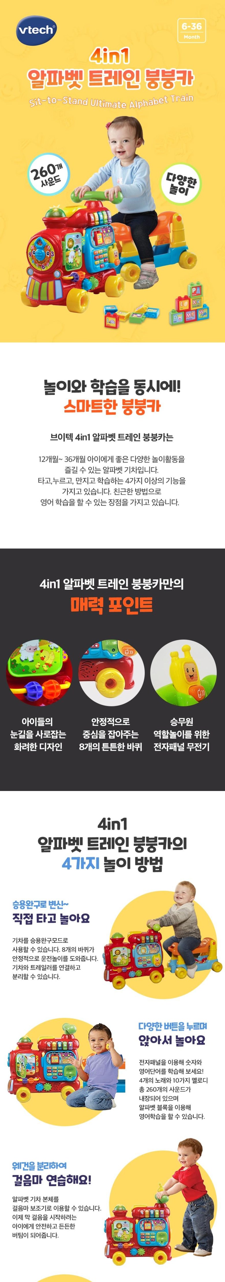브이텍 4in1 알파벳 트레인 붕붕카 기차붕붕카 숫자 영어 학습 멜로디 블록 걸음마보조기 트레일러 수레 웨건 세트