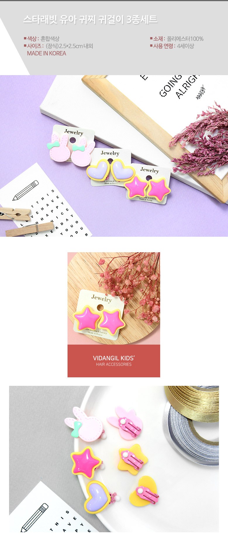 비단길 스타래빗 유아 귀찌 귀걸이 3종세트