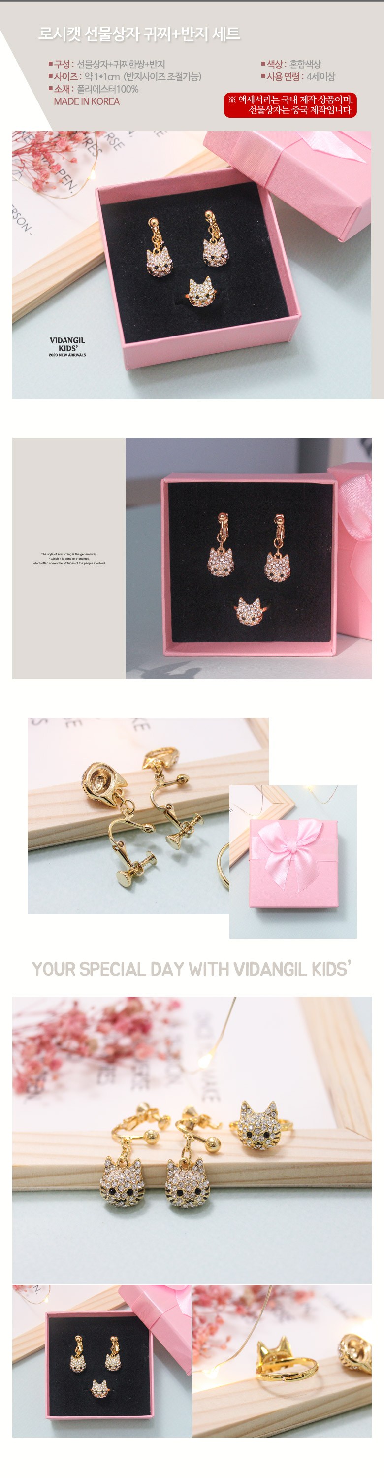 비단길 키즈 로시캣 선물상자 + 반지 + 귀찌 양쪽 세트