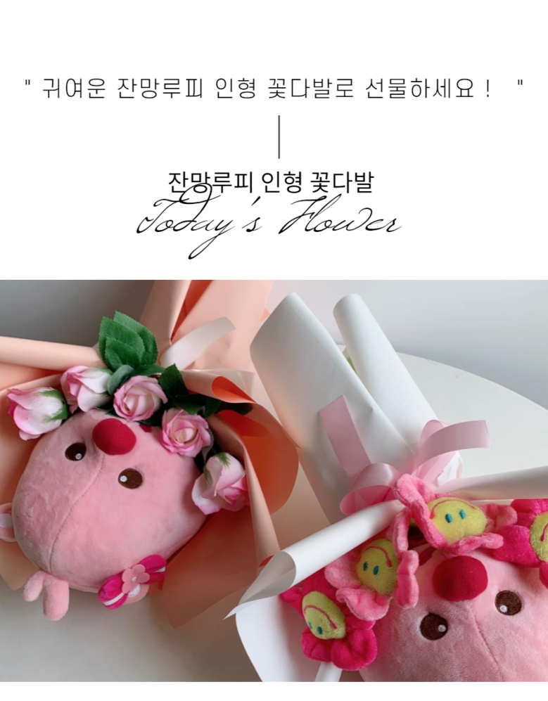 [뽀로로 정품] 잔망루피 인형 꽃다발, 인형+스마일2, 핑크, 선택안함