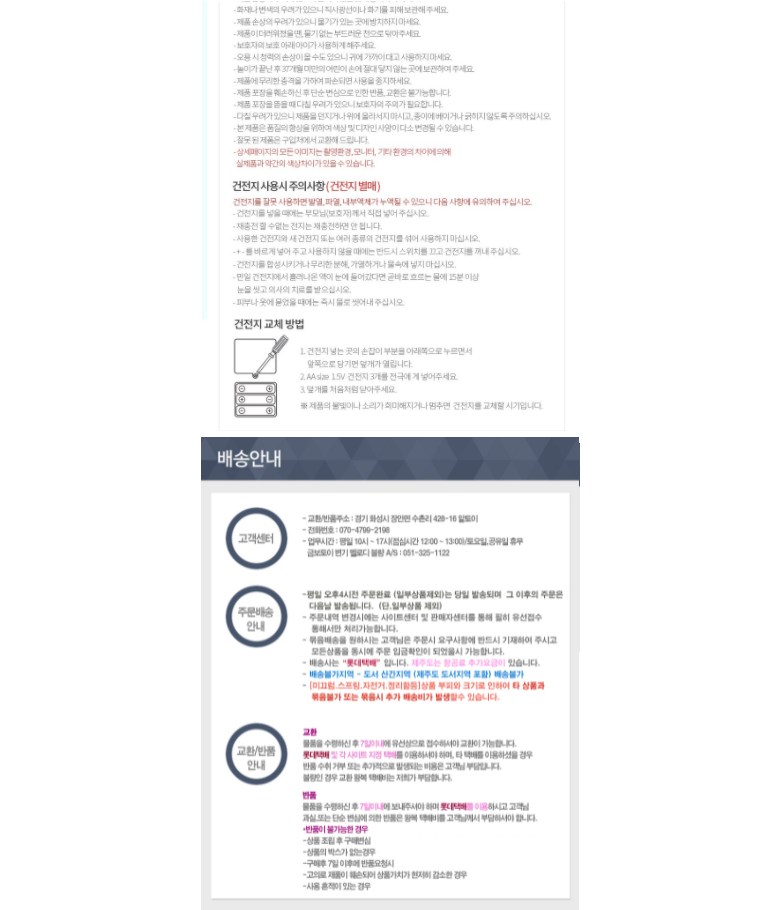 소비자상담 관련 전화번호 상품 상세페이지 참조