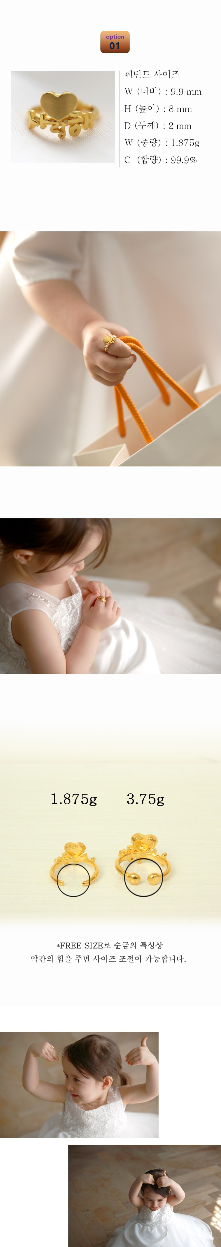 [뽀르띠] 순금 24K 사랑해 백일반지 돌반지 1.875g 3.75g