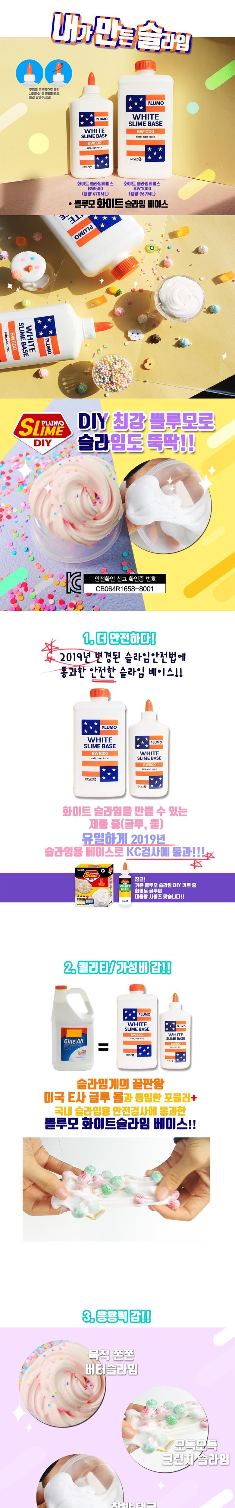 쁠루모 화이트베이스(BW)/클리어글루(BL)/DIY카운트슬라임키트/슬라임만들기, 쁠루모 슬라임 DIY 3카운트 1개