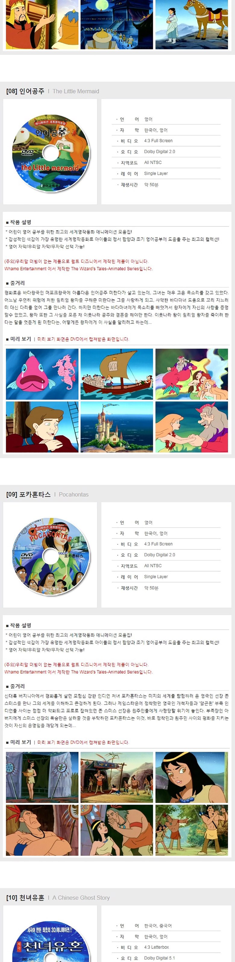 품명 및 모델명 [디즈니세계명작동화]세계명작동화 그린 세트 (신밧드의 모험+노틀담의 곱추+아기 돼지 삼형제+알리바바와 40인의 도둑+멜로디 타임+미녀와 야수+뮬란+인어공주+포카혼타스+천녀유혼)