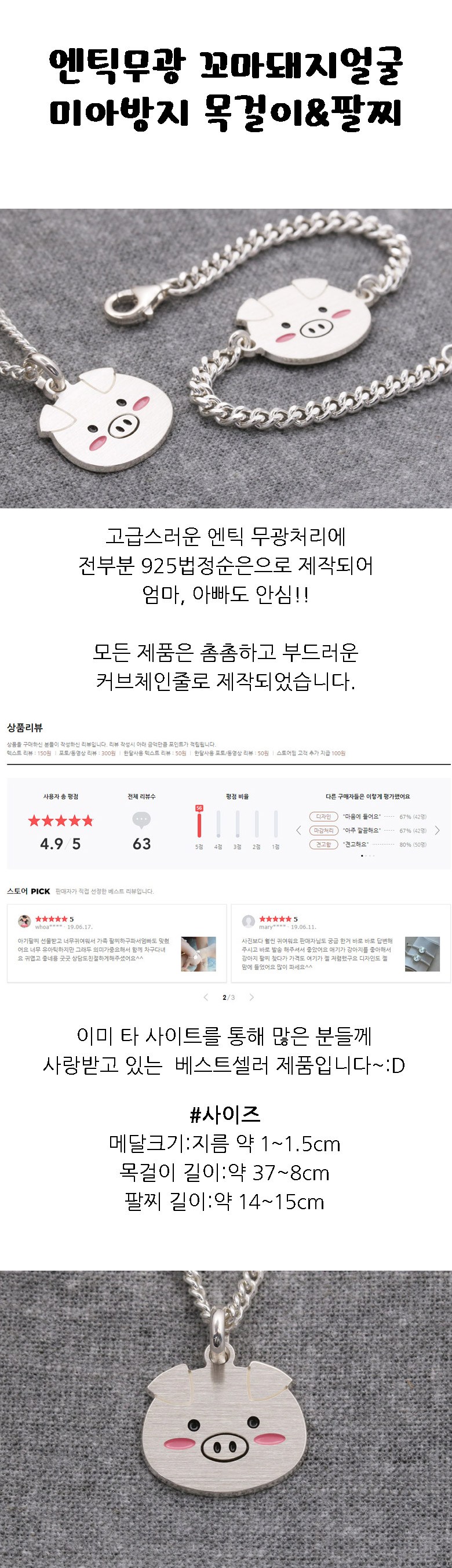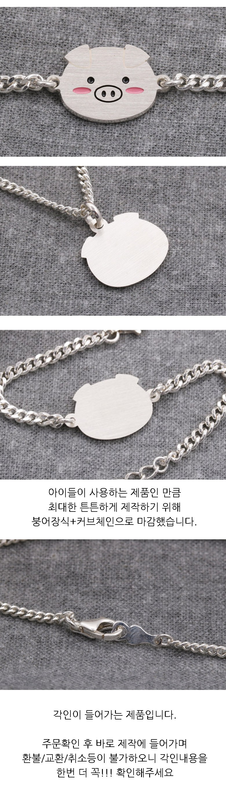 세방쥬얼리 엔틱무광실버 돼지띠돼지얼굴 미아방지목걸이팔찌