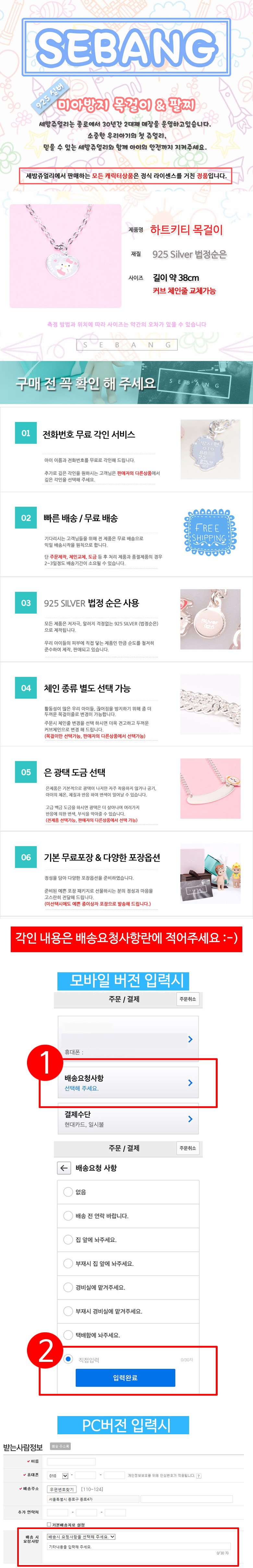 [세방쥬얼리] 하트키티 실버 미아방지 목걸이, 하트키티 목걸이