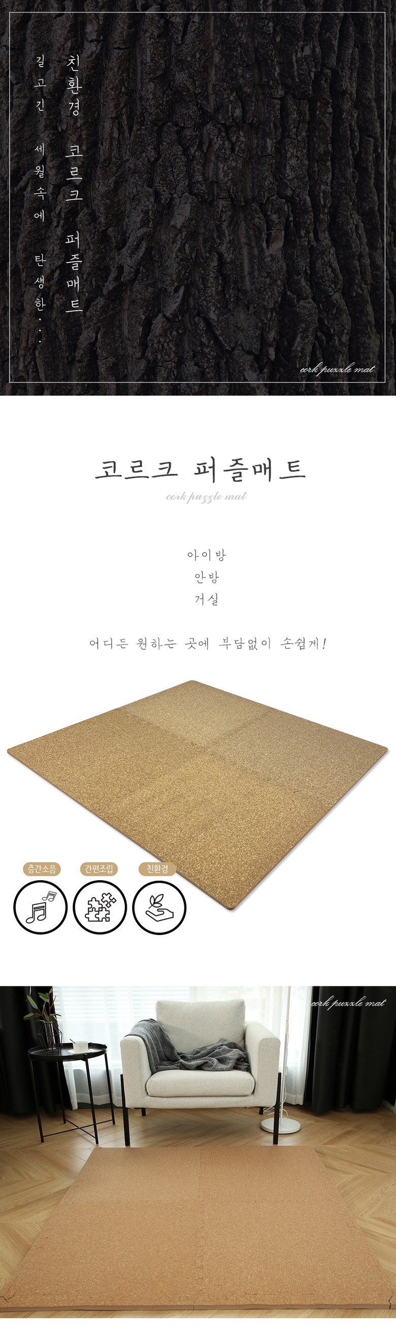 손할매 친환경 코르크 퍼즐매트 4P 대형 60cm X 1.2 cm 보온매트 층간소음방지매트