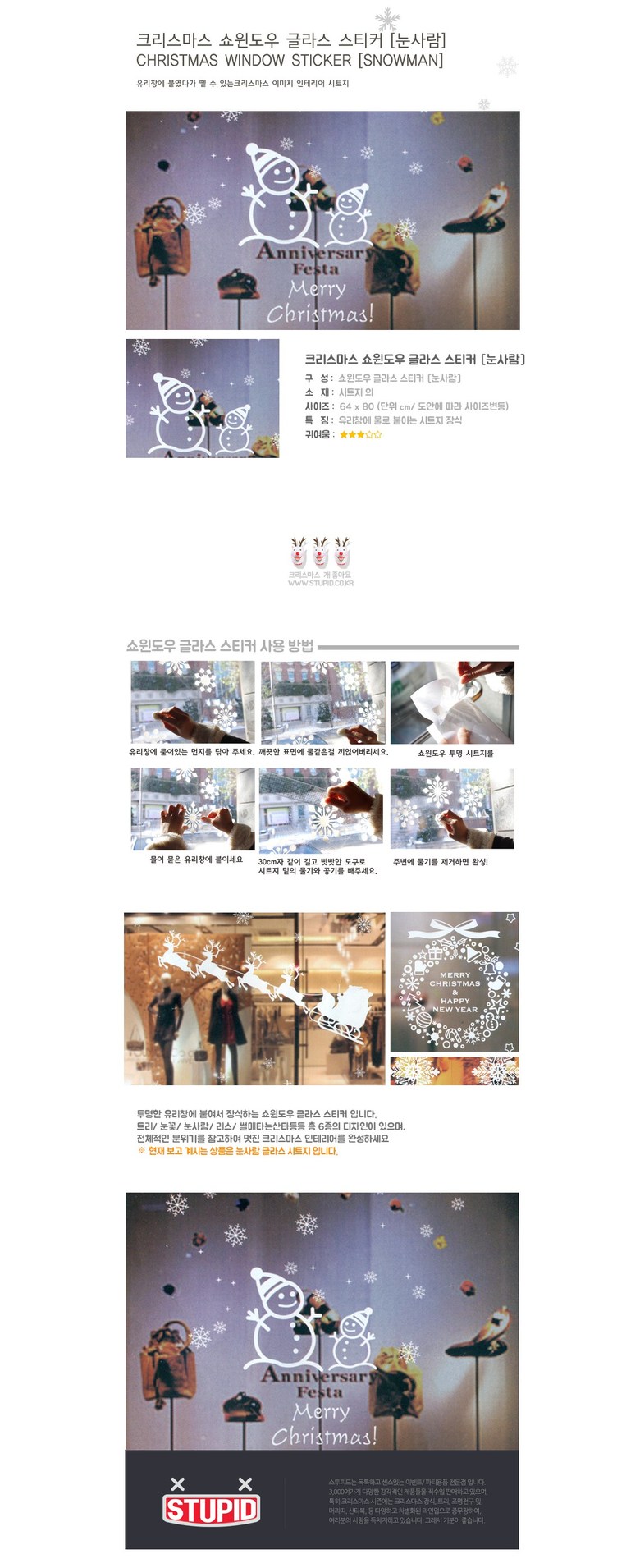 스투피드 크리스마스풍선 스티커 모음, 42_크리스마스 쇼윈도우 글라스 투명 시트지 3.눈사람