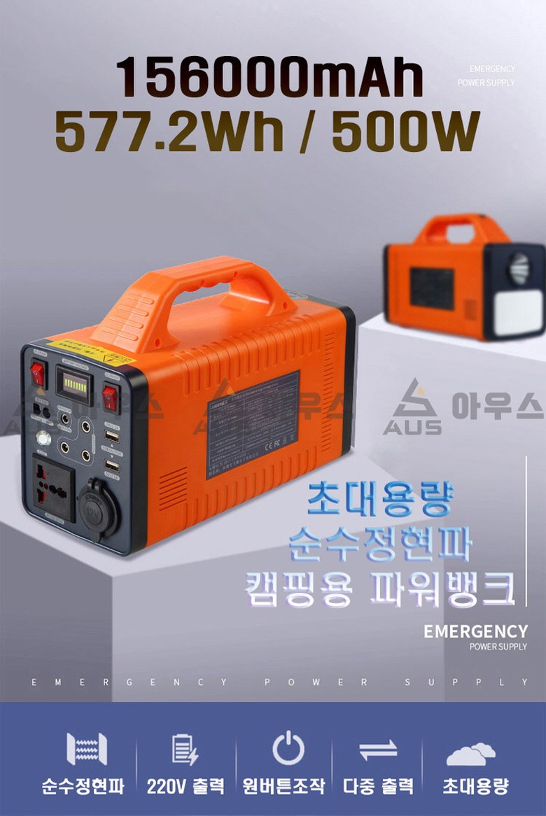아우스 JE 577Wh 156000mAh 초대용량 캠핑용배터리 파워뱅크 220V 인버터 태양전지판 태양열패널 태양열집열판 점프스타터 랜턴 낚시랜턴 낚시후레시 캠핑카 차박용품, 파워뱅크(577Wh)