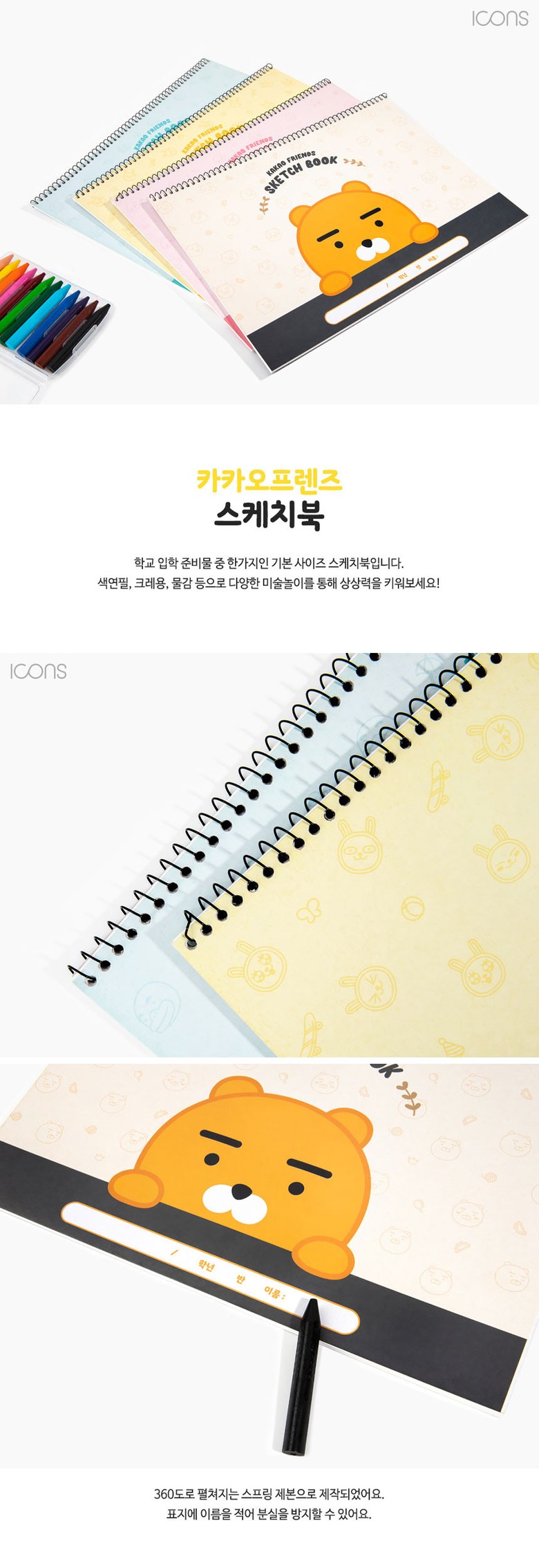 아이콘스 카카오프렌즈 스케치북 20매 5묶음(랜덤발송)