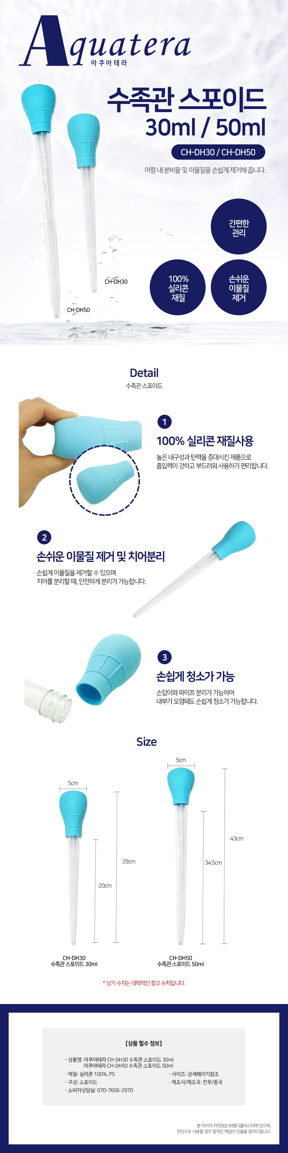 품명 및 모델명 아쿠아테라 CH-DH50 수족관 스포이드 50ml 3개